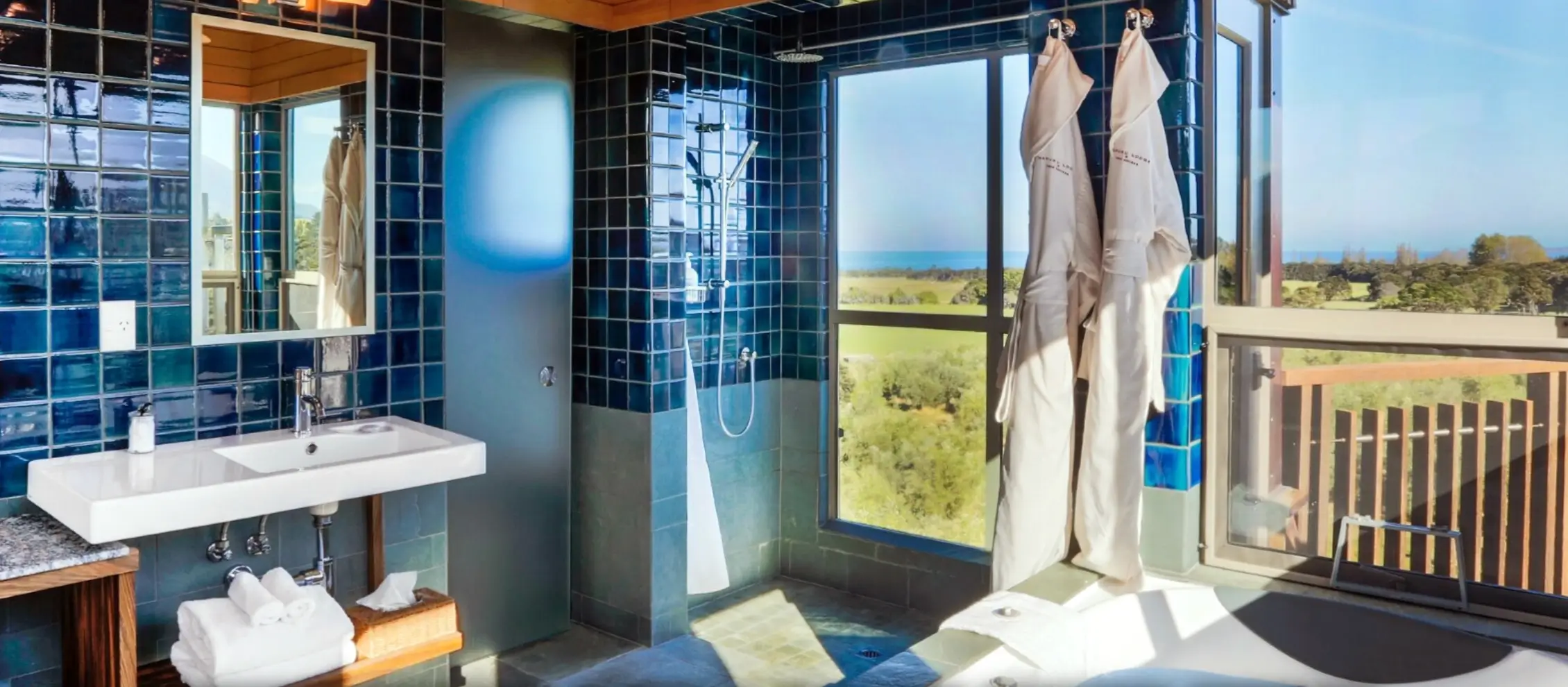All of the Lodge rooms are suites which offer large soaking tubs, king beds and balconies that look over the farm’s deer grazing in paddocks adjacent to the Kaikoura mountains. The light filled Hapuku Room is beautifully furnished with fireplace, writing desk and private entrance.