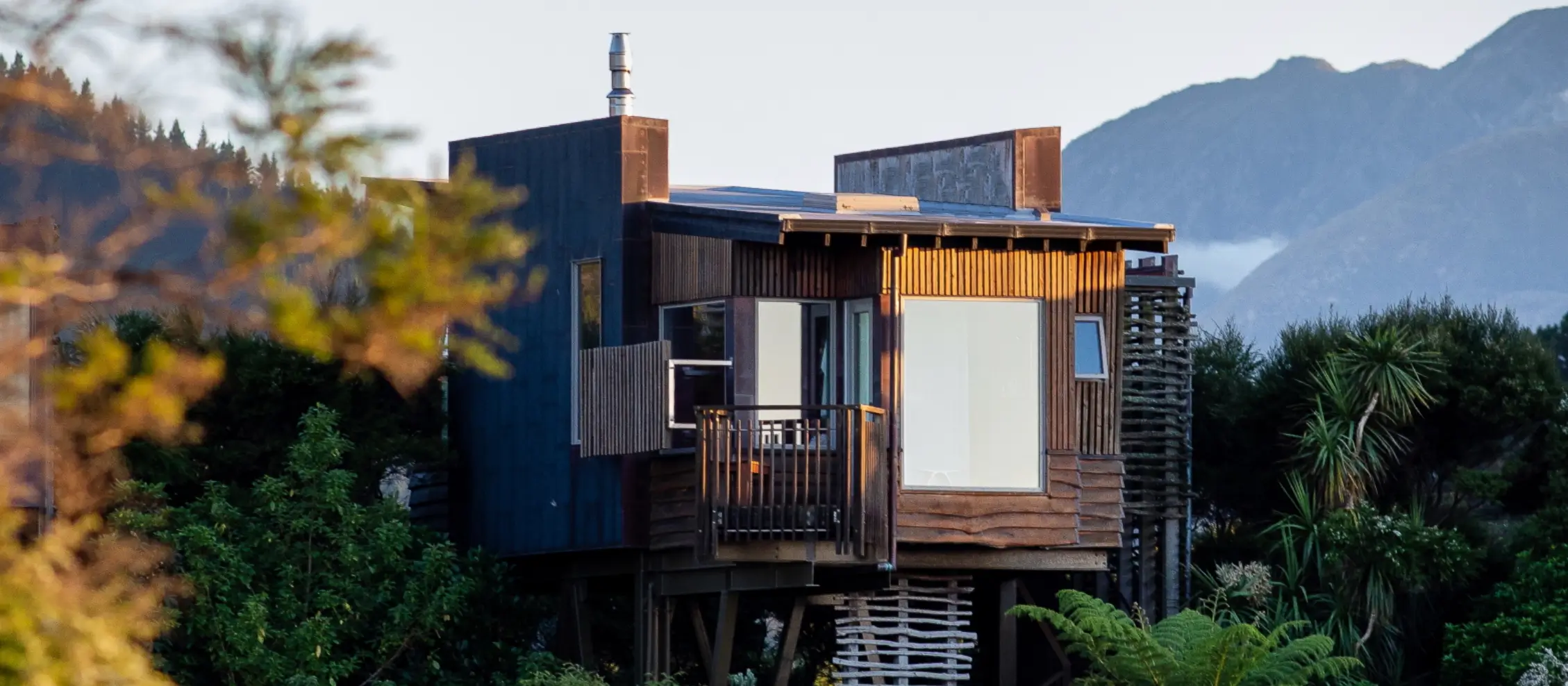 The Lodge’s five Tree Houses are unique, nested 10 meters or more above the ground in the canopy of a native Kanuka grove. The Tree Houses are designed to complement the natural environment, as your bedroom in the sky. Their large windows bring the tree canopies into the bedroom and provide impressive views of Kaikoura’s dramatic mountains and the Pacific Ocean.