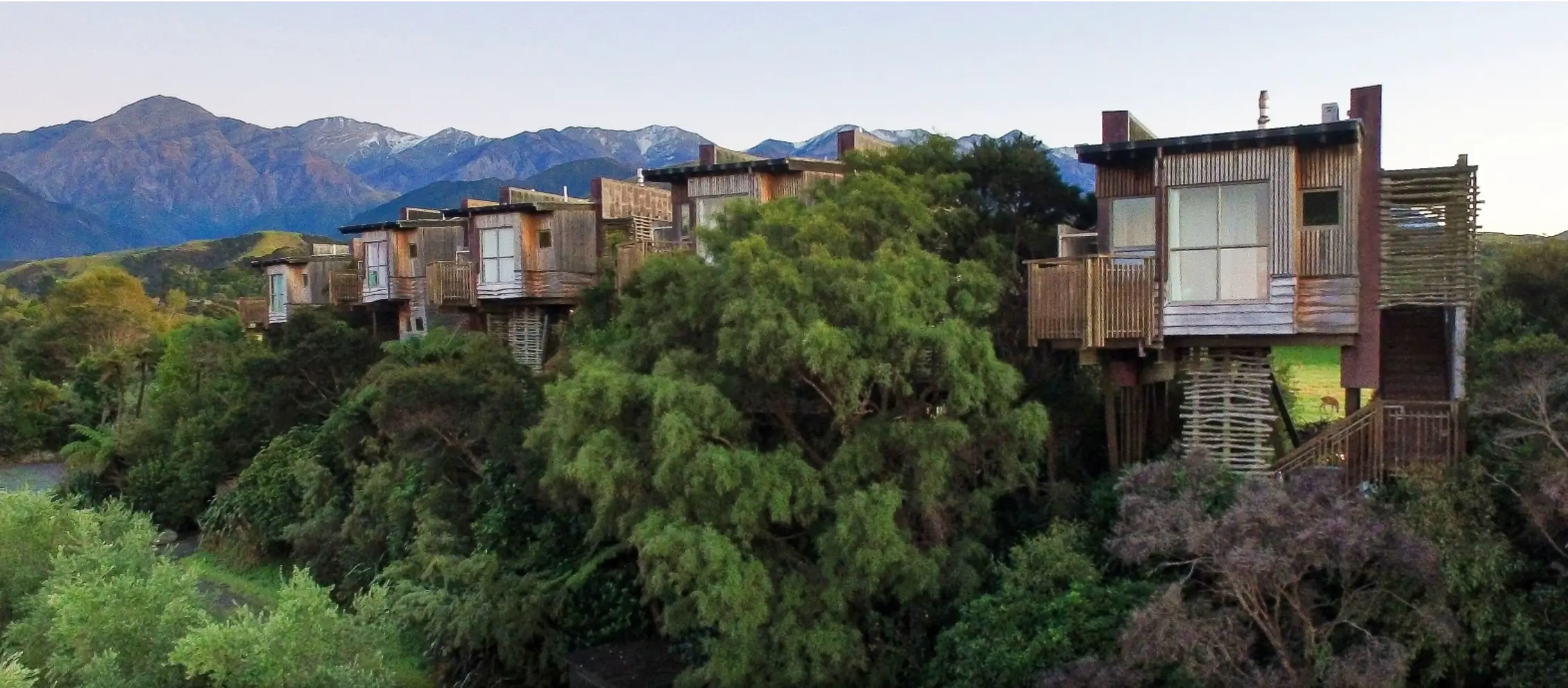 Hapuku Lodge + Tree Houses is a contemporary country hotel located on a deer breeding farm in the South Island of New Zealand. It sits snugly at the base of the Kaikoura Seaward Mountain Range, with the Kaikoura coast and famed Mangamaunu Bay only a kilometre to the east.