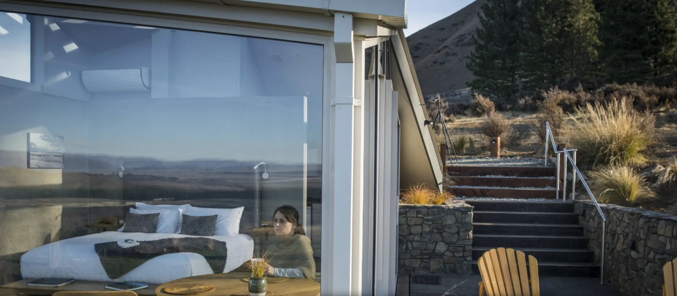 Enjoy the southern night sky from the comfort of your own bed! Gaze at the Southern Cross and Milky Way at night and take in the extraordinary views of the Mackenzie Country by day.