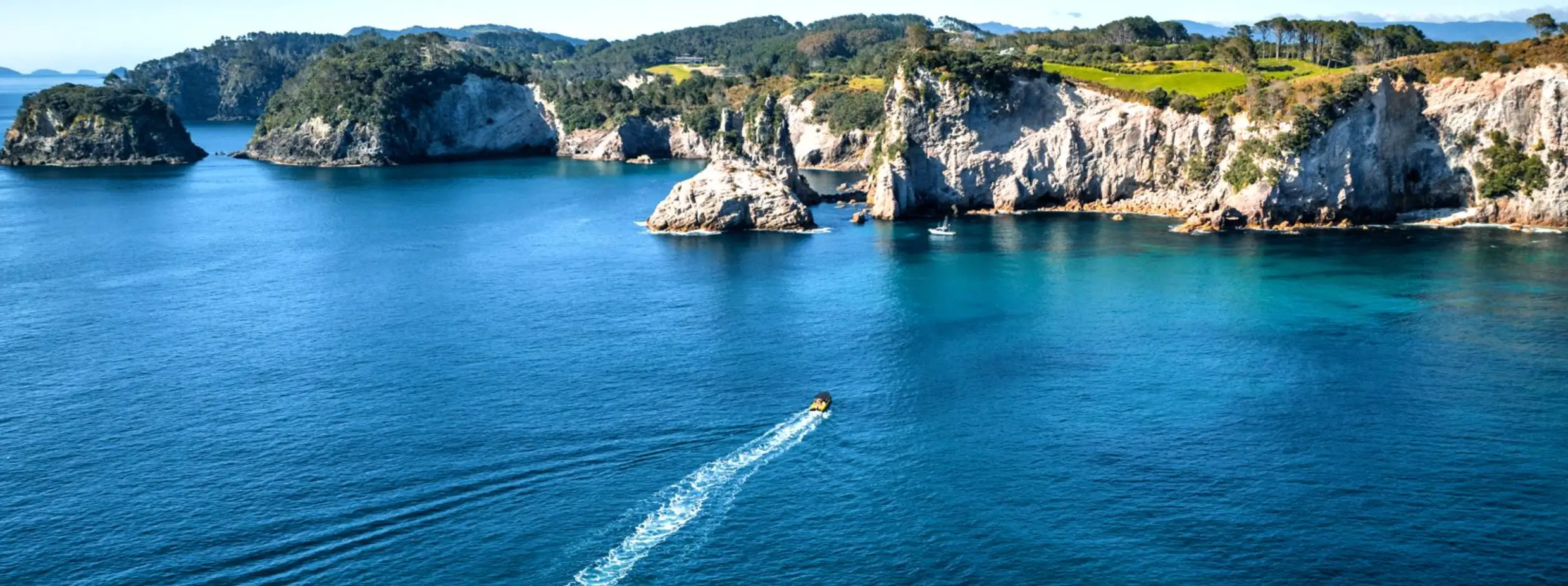 Cruise through the heart of the Te Whanganui-a-Hei Marine Reserve, where nature is at its most vibrant. Your local skipper will guide you past pristine beaches like Lonely Bay and Cooks Beach, sharing the rich history of Captain Cook’s landing and the ancient Māori heritage of the Mercury Bay coastline.