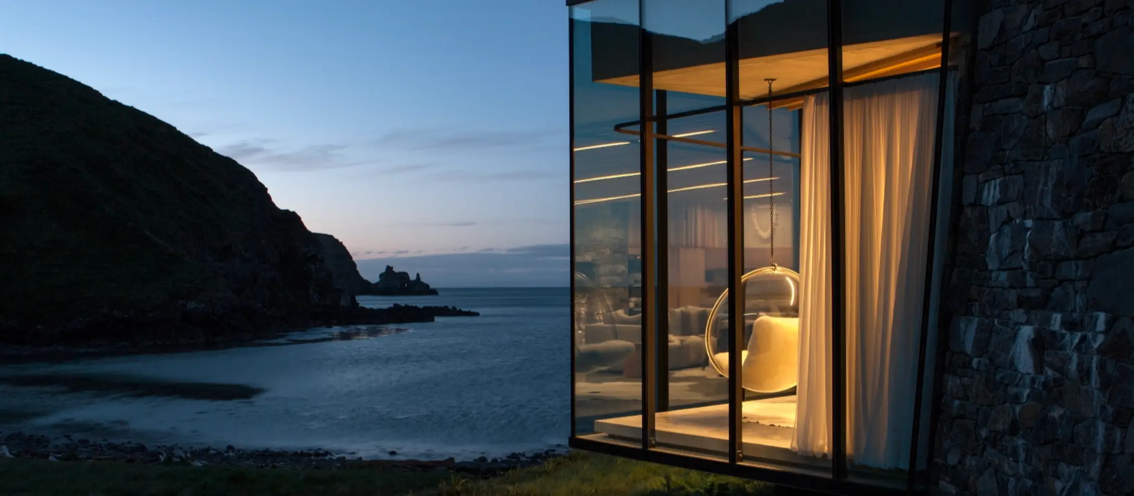 Accessed by helicopter or by a 40-minute transfer in a 4WD Annandale vehicle across the cliff-top farm tracks, this awe-inspiring setting offers contemporary accommodation in a remote location with amazing views.