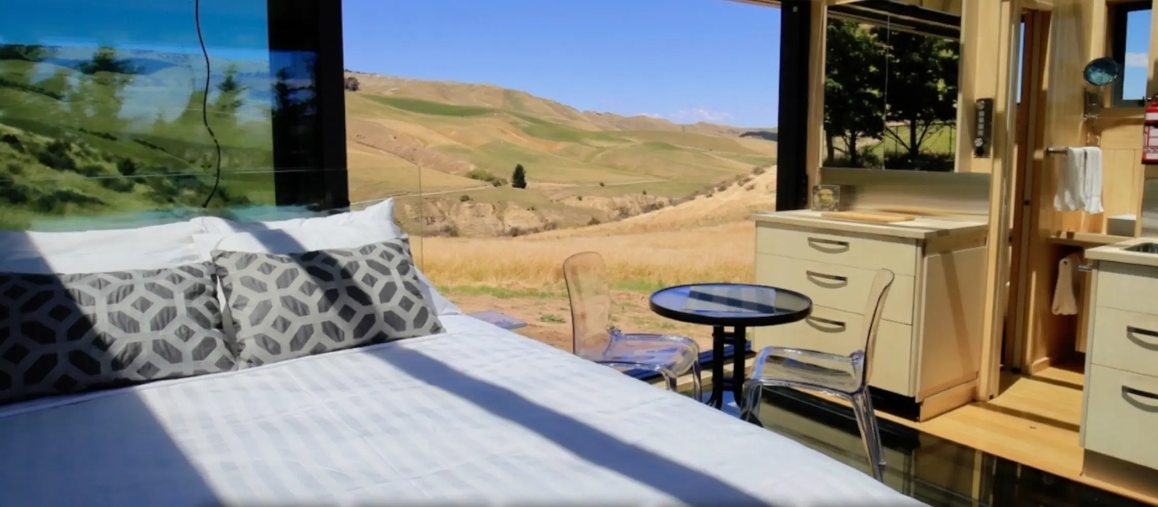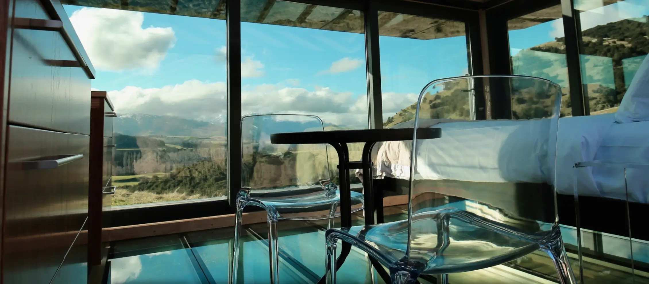 Pure Pods are quite literally a room with 360 ° views. The luxury eco-pods are made from heavy duty glass - on the roof and floor as well as the walls. At night you sleep with views of the Southern Cross and millions of other stars and during the day you are surrounded by wildlife and dramatic natural landscapes.