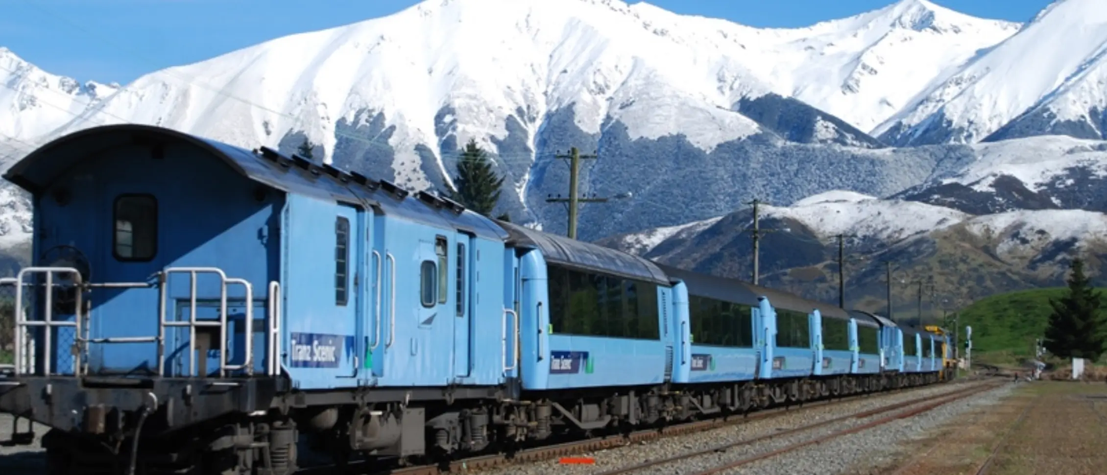 The TranzAlpine is one of the world’s great train journeys covering 223 kilometres (139 miles) one-way, taking just under 5 hours between Christchurch and Greymouth.