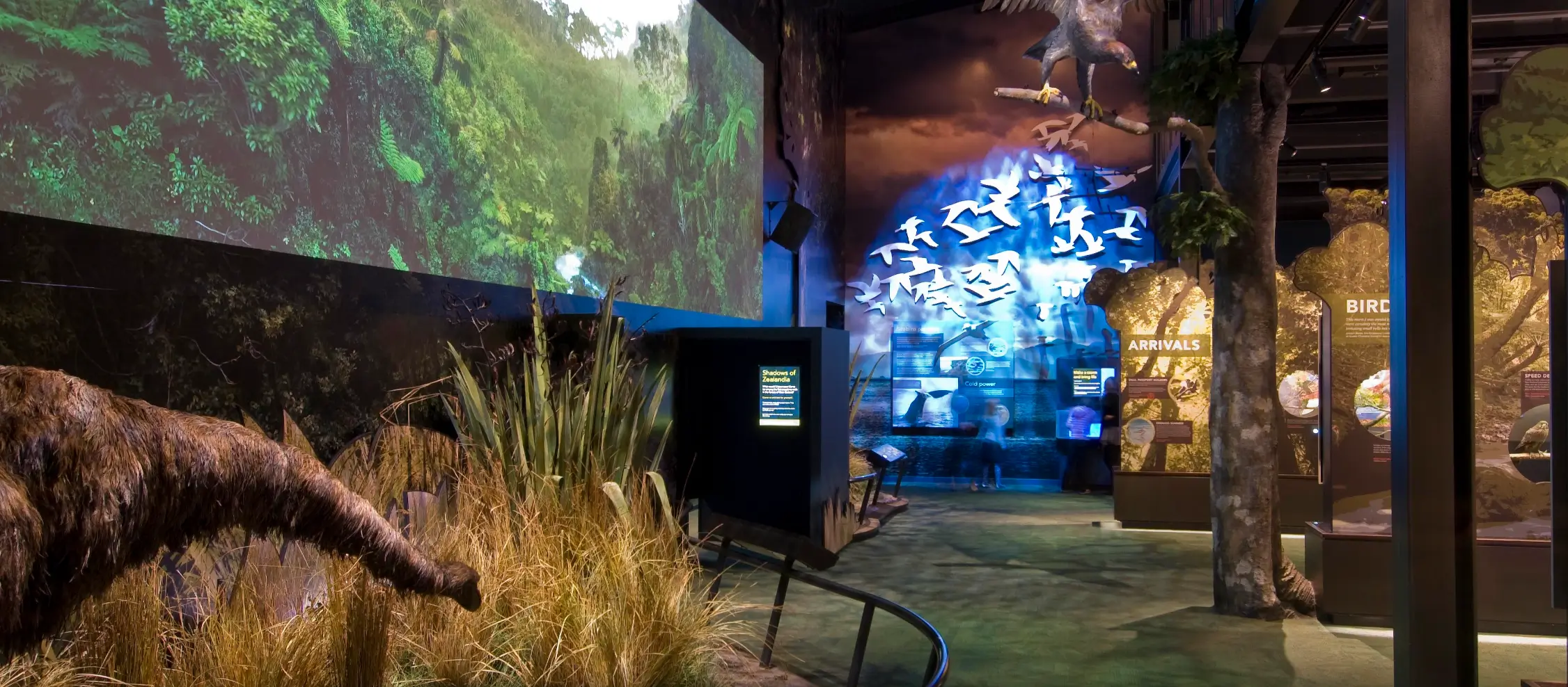 Your visit begins with an award-winning exhibition that charts a thousand years of New Zealand’s ecological transformation.